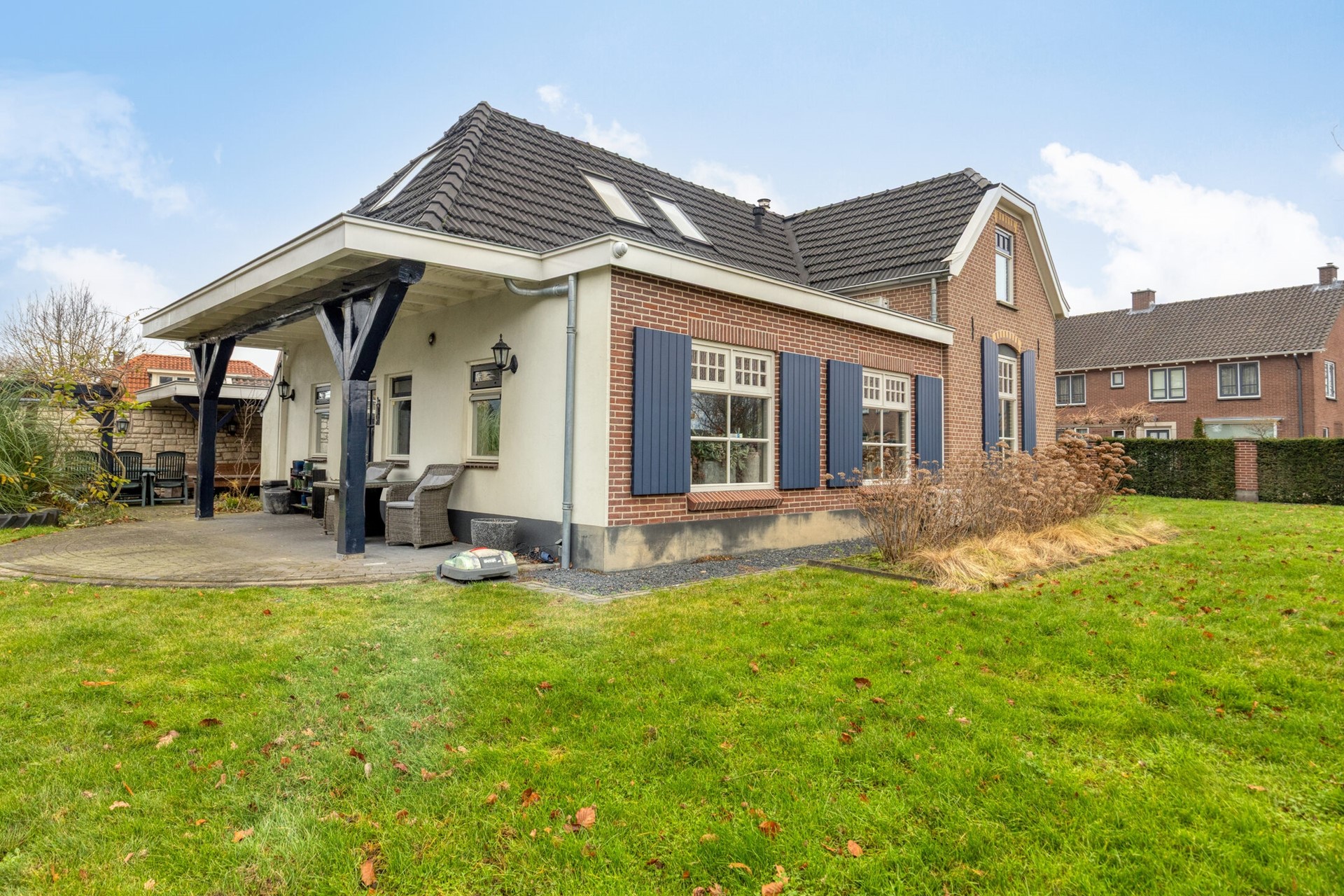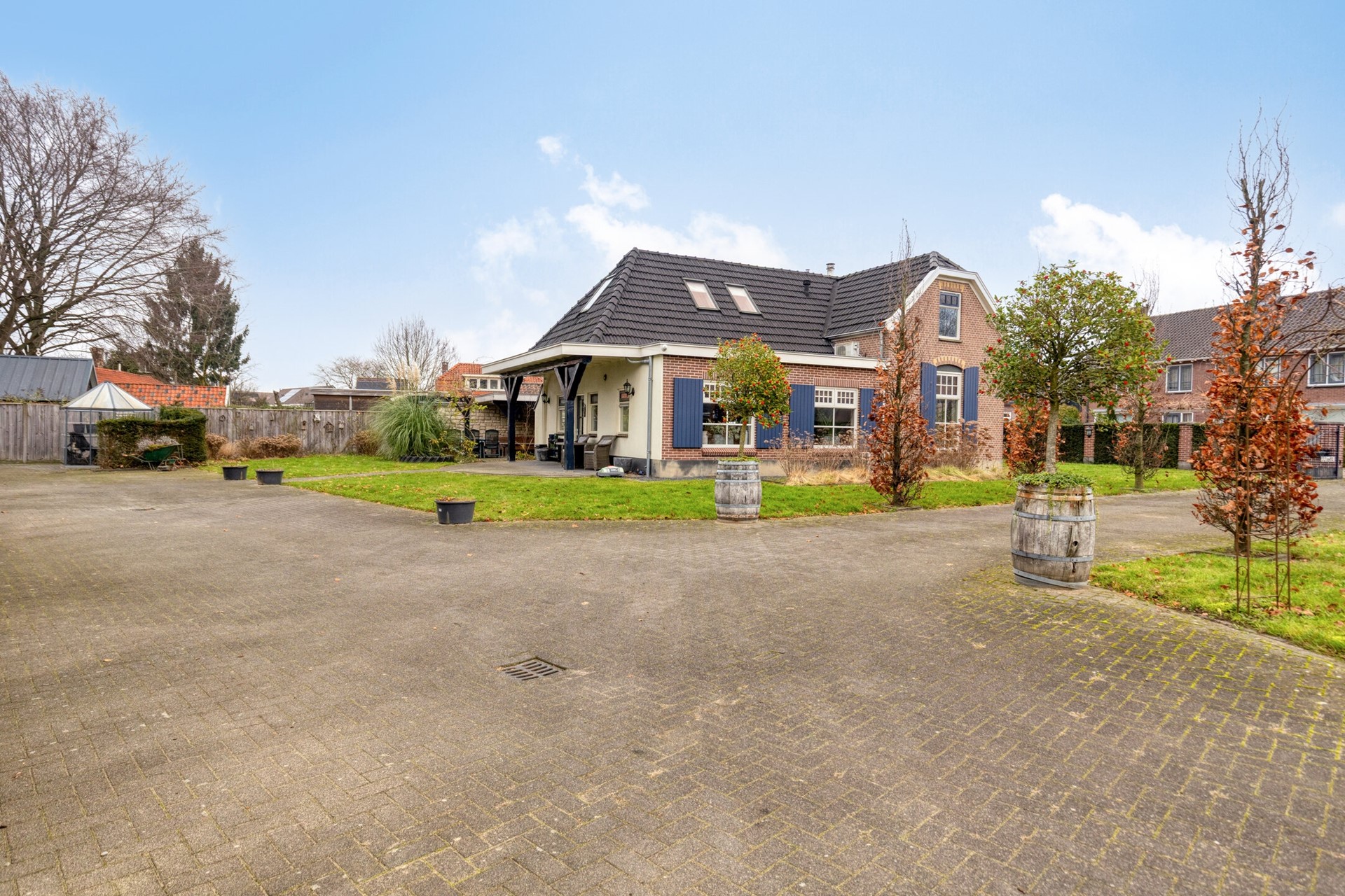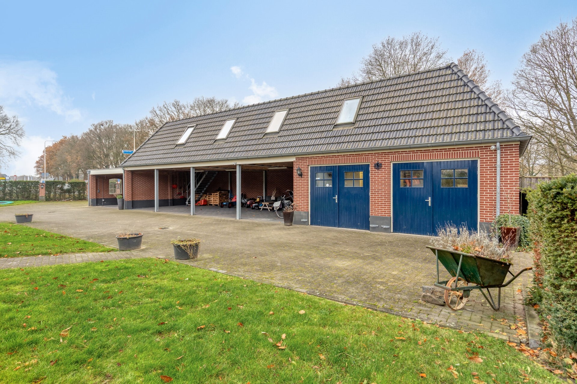 Ruime schuur ca. 125 m² met dubbele carport, open kapschuur en dubbele garage/werkplaats.