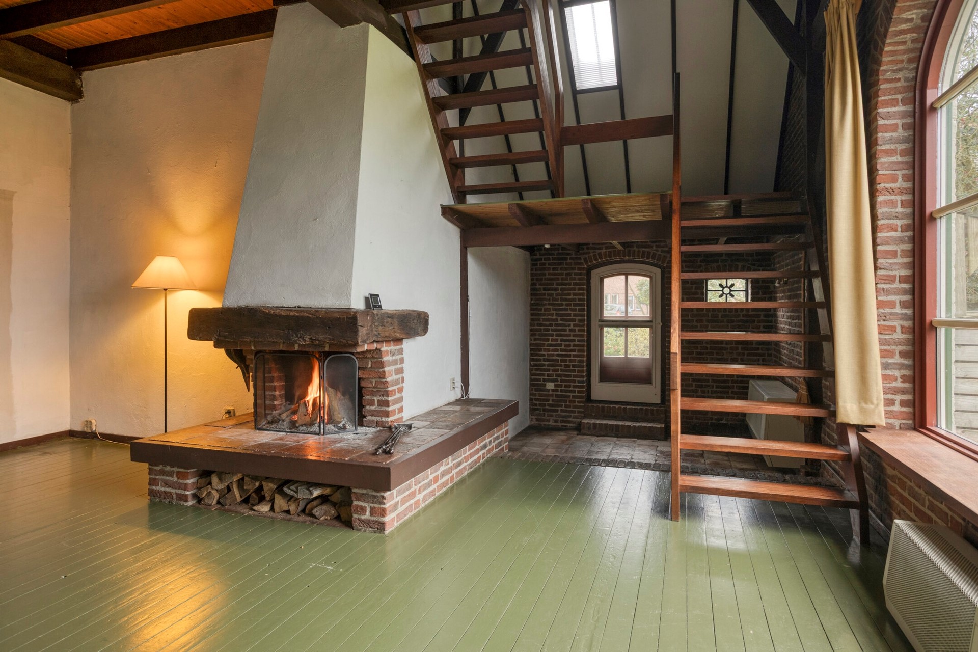 Begane grond: Entree, hal, werkkamer. Opkamer met toegang tot provisiekelder. Slaapkamer. Sfeervolle eetkamer en keuken met schouw. Ruime woonkamer met open haard en groot raampartij met uitzicht op diepe achtertuin. Zij-entree/hal. Badkamer met douche, toilet en wastafel. Via buitenom bereikbare berging.