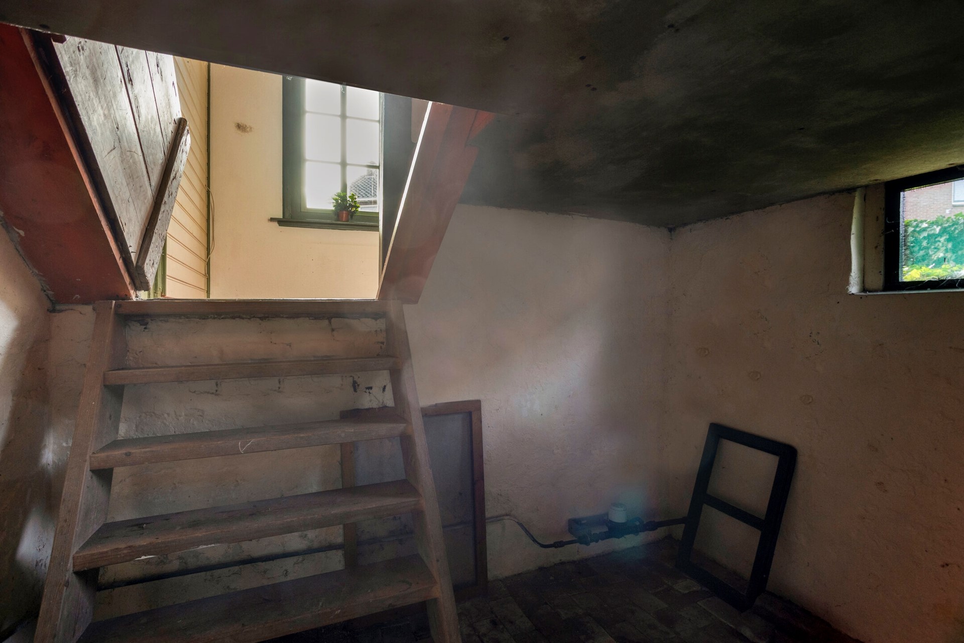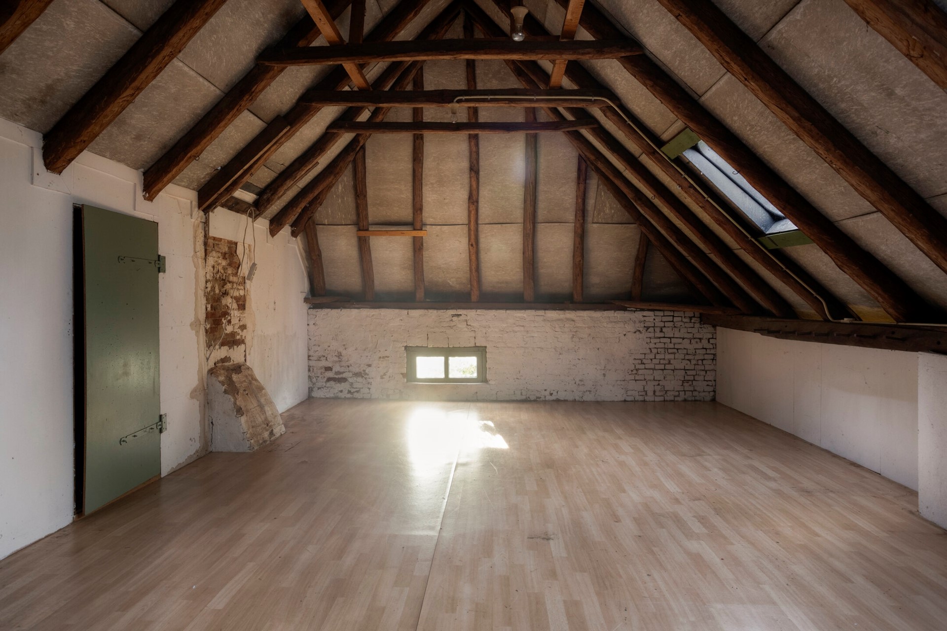 1e Verdieping: bordestrap naar slaapkamer en grote zolderruimte. Bergruimte/ zolderruimte.