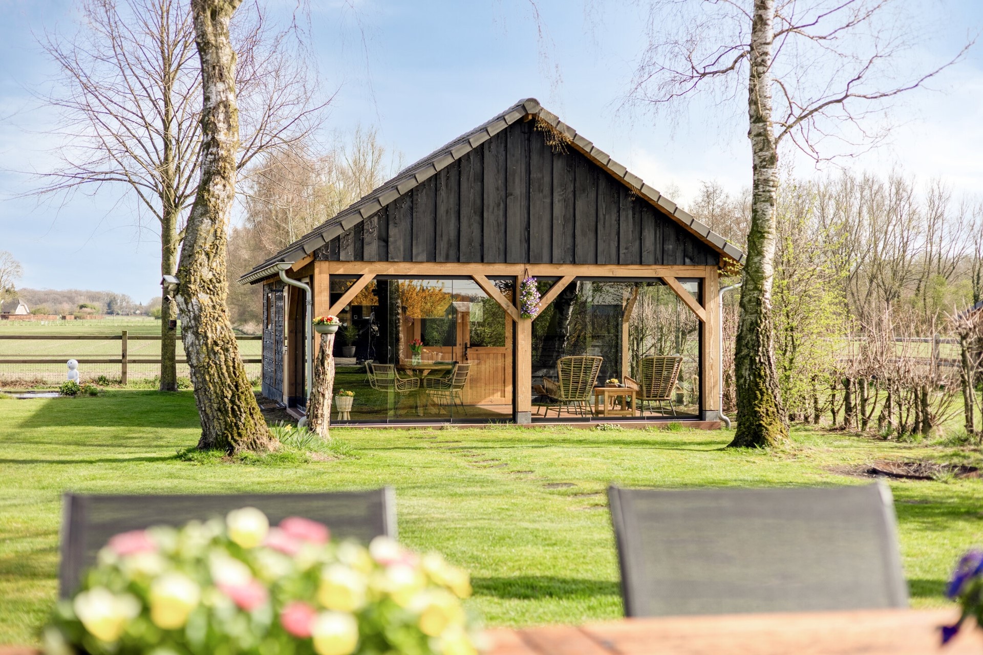 In 2023 is een royaal tuinhuis met serre gebouwd van circa 6 bij 10 meter.