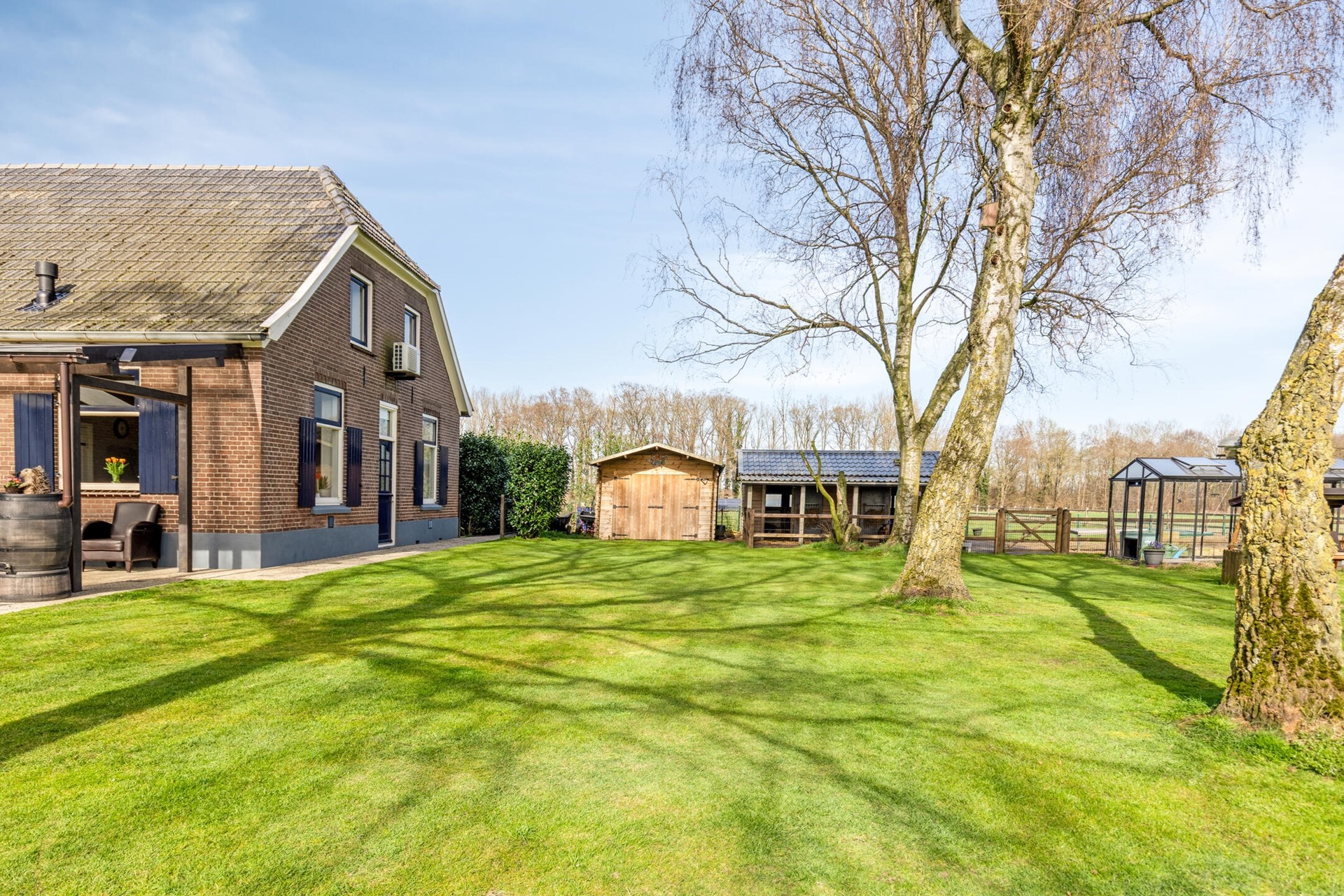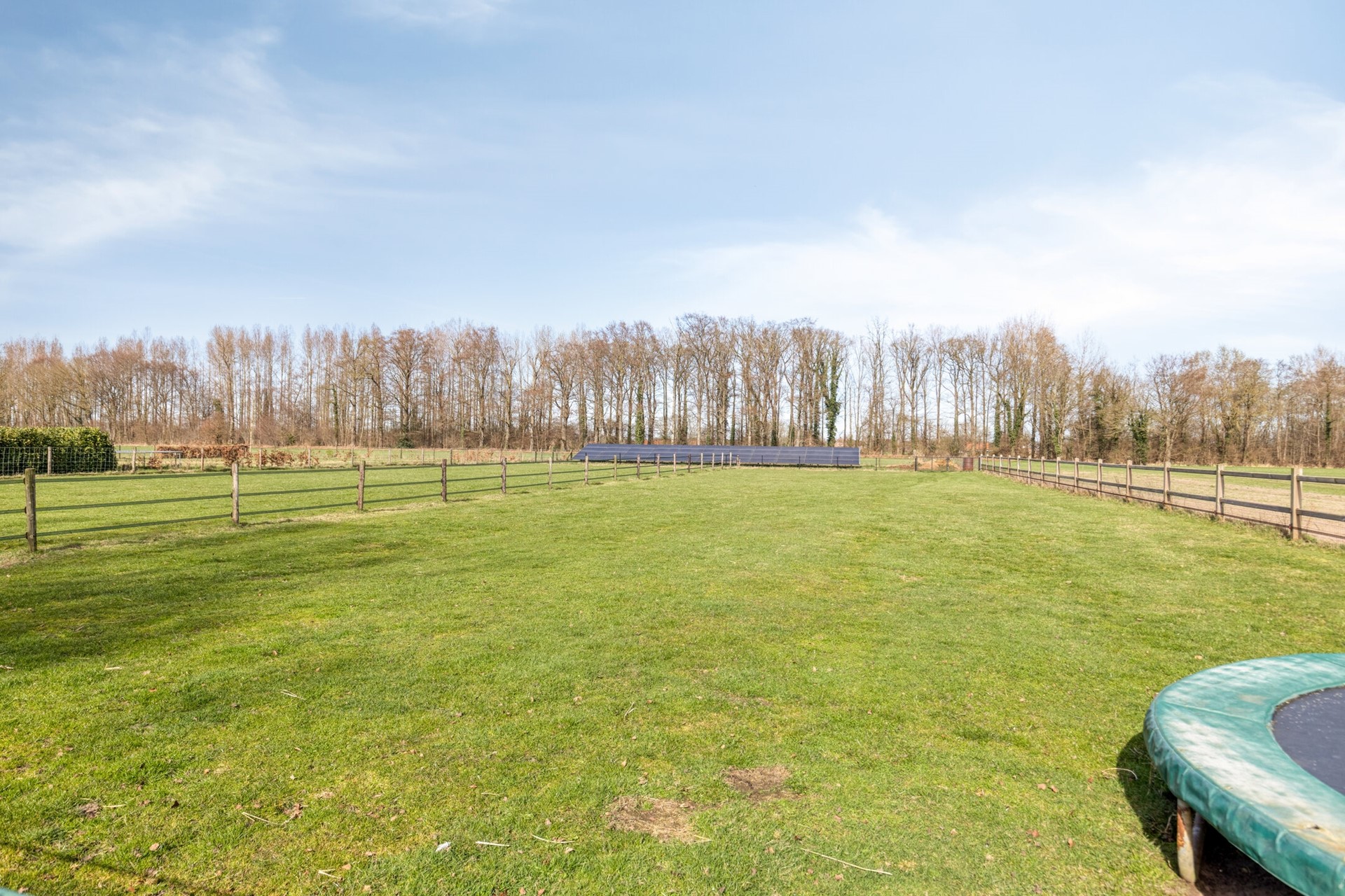 BuitenruimteHet perceel is volledig omheind en daarmee uitermate geschikt voor het houden van (hobby)dieren. Recent is er een fraaie houten doorsteekomheining geplaatst. De tuin en het omliggende terrein bieden volop privacy en rust. Hier geniet je dagelijks van weidse vergezichten en zie je regelmatig reeën over de velden lopen. In het voorjaar en de zomer verandert het geheel in een groene oase.