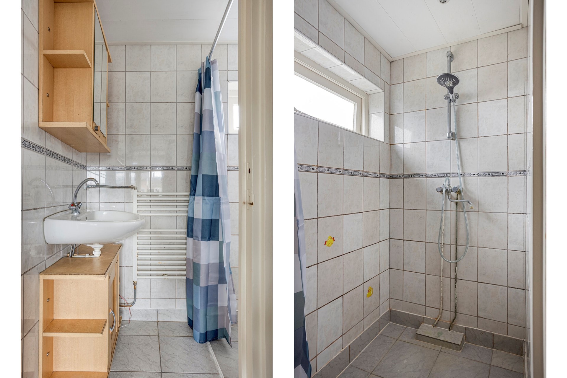 1e Verdieping: overloop, 3 slaapkamers met vaste kasten waarvan de hoofdslaapkamer met dubbele vaste kast. Badkamer met douche en wastafel.