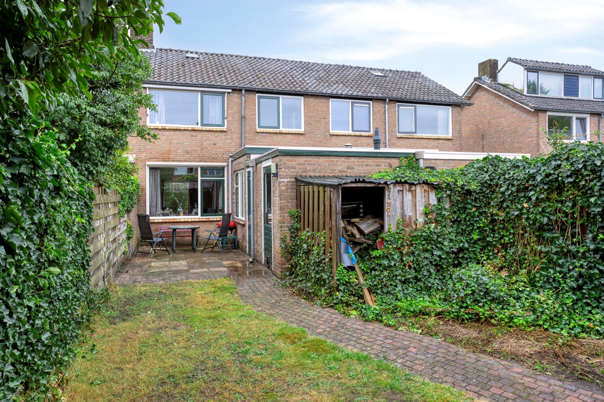 De ruime voortuin is gelegen op het oosten en de zonnige achtertuin, met aangebouwde stenen berging, houtopslag en terrasoverkapping is gesitueerd op het westen. De tuin is via achterom pad bereikbaar met fiets, motor etc.